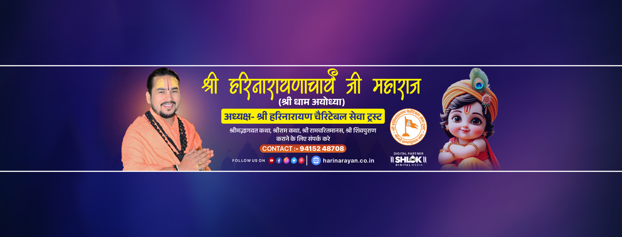 स्वामी श्री हरिनारायणाचार्य जी महाराज आज की युवा पीढ़ी के लिए प्रेरणाश्रोत हैं। देश-विदेश में विभिन्न धार्मिक आयोजनों के माध्यम से भगवान् की कथा एवं भगवान् की लीलाओं का अपनी सुमधुर वाणी से वर्णन कर जनमानस में प्रचार-प्रसार करके भगवान् से जोड़ रहे हैं। बाल्यावस्था से ही आपमें यह गुण विद्यमान थे जो आज नई प्रतिभा बनकर समाज के आम मानवीय को प्रेरित कर रहे हैं। आपका जन्म उत्तरप्रदेश के गोण्डा जनपद में ग्राम लालपुर नामक ग्राम में सरयू पारीण ब्राह्मण के तिवारी परिवार में हुआ आपके पिता पूज्य श्री महोश तिवारी एवं माता पूज्यनीया श्रीमती किरन देवी तिवारी हैं। बाल्यकाल से ही अलग व्यक्तित्व एवं प्रतिभा के धनी होने पर आपका मन वेदाध्यन एवं वैष्णव सनातन परम्परा की ओर प्रेरित होने के कारण परम पूज्य जगद्गुरु शंकराचार्य स्वामी श्री जयेन्द्र सरस्वती जी के लखनऊ विद्यालय में श्री काञ्ची कामकोटि वेद पाठशाला में पूज्य श्री यश जी स्वामीनाथन गुरुदेव की पावन सन्निधि में अल्पकाल में शुक्ल यजुर्वेद का सांगोपांग अध्ययन किया। तदोपरान्त अयोध्या स्थित श्रीरामलला देवस्थानम् पीठाधीश्वर परम पूज्य जगद्गुरु रामानुजाचार्य स्वामी डॉ० श्री राघवाचार्य जी महाराज से वैष्णव दीक्षा प्राप्तकर श्रीमद्भागवत, श्रीरामकथा का अध्ययन किया। अयोध्या में रहकर अन्य धार्मिक ग्रन्थों का विशेष अध्ध्यन किया। अध्ययन पूर्ण होने पर आपके द्वारा कथा प्रवचन के माध्यम से भगवत्भागवत् कार्य से जनमानस का मागदर्शन कर रहे हैं। सम्प्रति पूज्य स्वामी जी निरन्तर धर्म प्रचार कर रहे हैं। अभी कुछ समय पूर्व आपने श्री हरिनारायण चेरीटेबल सेवा ट्रस्ट की स्थापना की है जिसका उद्देश्य गौ-संत सेवा, ब्राह्मण सेवा, विद्यार्थी सेवा के साथ भगवत्भागवतों की सेवा है। अपने वैशिष्ट से आप अपने पूर्वाचार्यों की कृति को ऐसे ही संजोये रखें साथ ही आपका समय एवं धन सेवा कार्यों में लगता रहे और अपने शिष्य-प्रशिष्यों को भी सेवा कार्यों को करने के लिए प्रेरित करने हेतु आप प्रेरणाश्रोत बनें रहें इन्हीं मंगलकामनाओं के साथ आप सदैव स्वस्थ्य रहे और भगवान् की कृपा आप पर बनी रहे। जय श्रीमन्नारायण !
